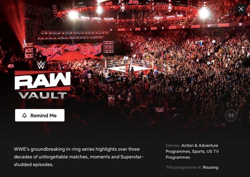 Firstly ‘WWE Raw Vault’ is listed as covering the “groundbreaking in-ring series highlights over three decades of unforgettable matches, moments and Superstar-studded episodes.”
